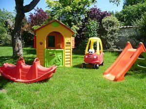 Ostatnim elementem wykończenia i wyposażenia ogrodu, powinno być bezpieczne miejsce zabaw dla dzieci, jeśli je oczywiście posiadamy. Trzeba wydzielić na ten cel osobny kawałek wolnej przestrzeni, dobrze widocznej zarówno z innych części ogrodu, jak i z domu. Pozwoli to na stałą kontrolę tego, co robią nasi milusińscy i natychmiastową reakcję w przypadku jakichkolwiek zagrożeń. Nie może to także być zbyt nasłonecznione miejsce, lepiej, aby plac zabaw był częściowo zacieniony. W kwestii wyposażenia lepiej skorzystać z gotowej oferty firm, zajmujących się sprzedażą tego typu akcesoriów i kupić potrzebne nam huśtawki, zjeżdżalnie, mały domek oraz obowiązkową piaskownicę. Taki sprzęt na pewno będzie całkowicie bezpieczny w użytkowaniu, a ten sprzedawany na rynku w naszym kraju musi posiadać wszystkie wymagane atesty oraz certyfikaty bezpieczeństwa. Kiedy dzieci dorosną, większość urządzeń możemy rozbudować lub w razie potrzeby wymienić na większe. Zadbajmy też o zestaw narzędzi dla małego ogrodnika, bo nic nie sprawia maluchom takiej radości, jak pomoc dorosłym w pracach ogrodniczych, grabieniu trawnika czy pieleniu grządek.
