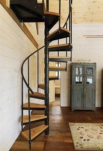 - schody spiralne, czyli kręcone, oparte na centralnym słupie, wokół którego biegną stopnie. Zajmują najmniej miejsca, ale są z kolei strome i utrudniają wniesienie na wyższe piętro jakichkolwiek większych przedmiotów. Zarówno konstrukcja nośna, jak i stopnie są najczęściej robione z metalu, choć spotyka się tez konstrukcje drewniane. Ten rodzaj schodów jest również dostępny w postaci gotowych zestawów do samodzielnego montażu.