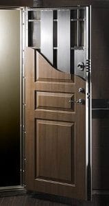- atestowany zamek centralny, o klasie odporności C, zabezpieczony od zewnątrz osłoną uniemożliwiającą jego przewiercenie. Taki zamek uruchamia system rygli, działających w wielu płaszczyznach, których ilość w najlepiej wyposażonych modelach może sięgać nawet 14 sztuk. W razie potrzeby takie zamknięcie można dodatkowo wzmocnić kolejnymi zamkami lub umieszczoną od wewnątrz zasuwą.